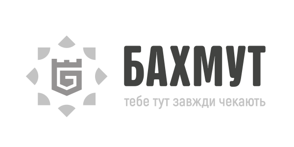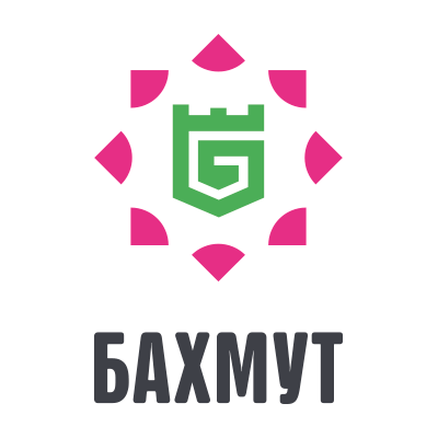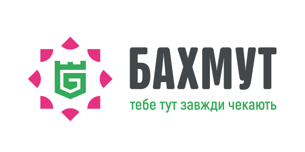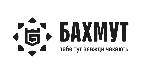 В центрі логотипу — стилізована перша буква назви міста Бахмут. Верхня частина букви нагадує фортецю, що ілюструє потужність громади і пов’язує логотип з концепцією позиціонування.
