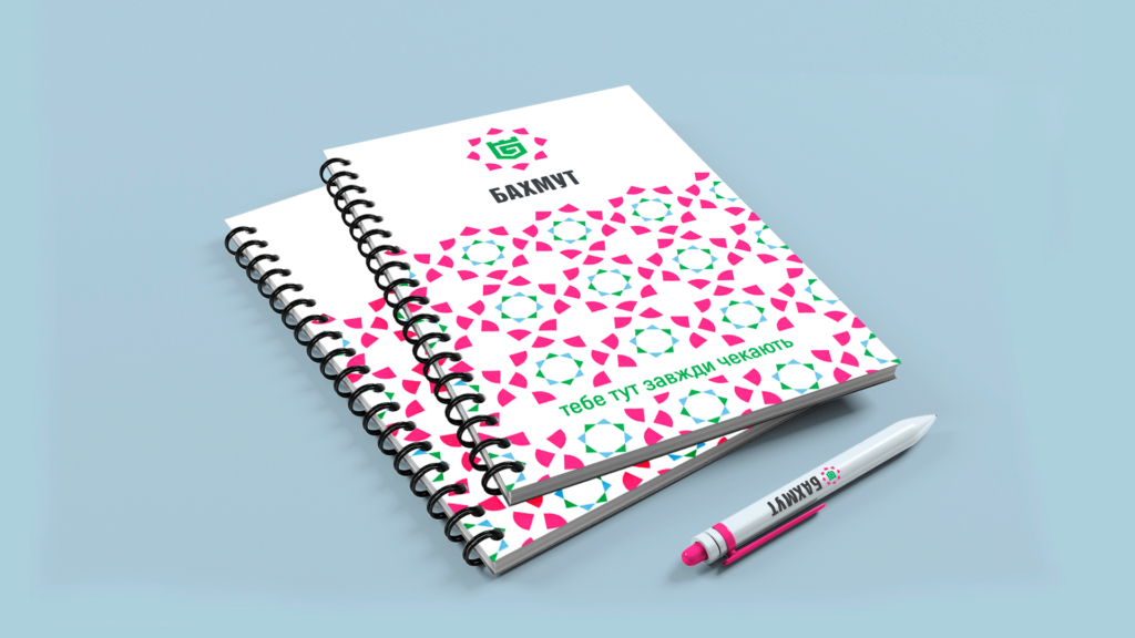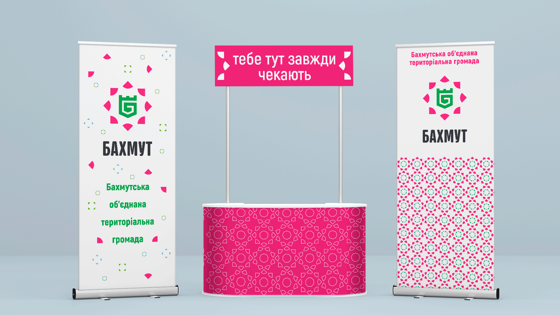 Патерн — це елемент, який дозволяє об’єднувати різні макети в рамках фірмового стилю. У брендуванні деяких об’єктів для Бахмутської громади патерн використовується у випадках,коли необхідно заповнити площину фірмовим стилем. Цей патерн рекомендується використовувати у продукції більш офіційного, ділового, святкового характеру. Для продукції молодіжного призначення, рекомендується використовувати для оформлекння площ фірмовий елементю.