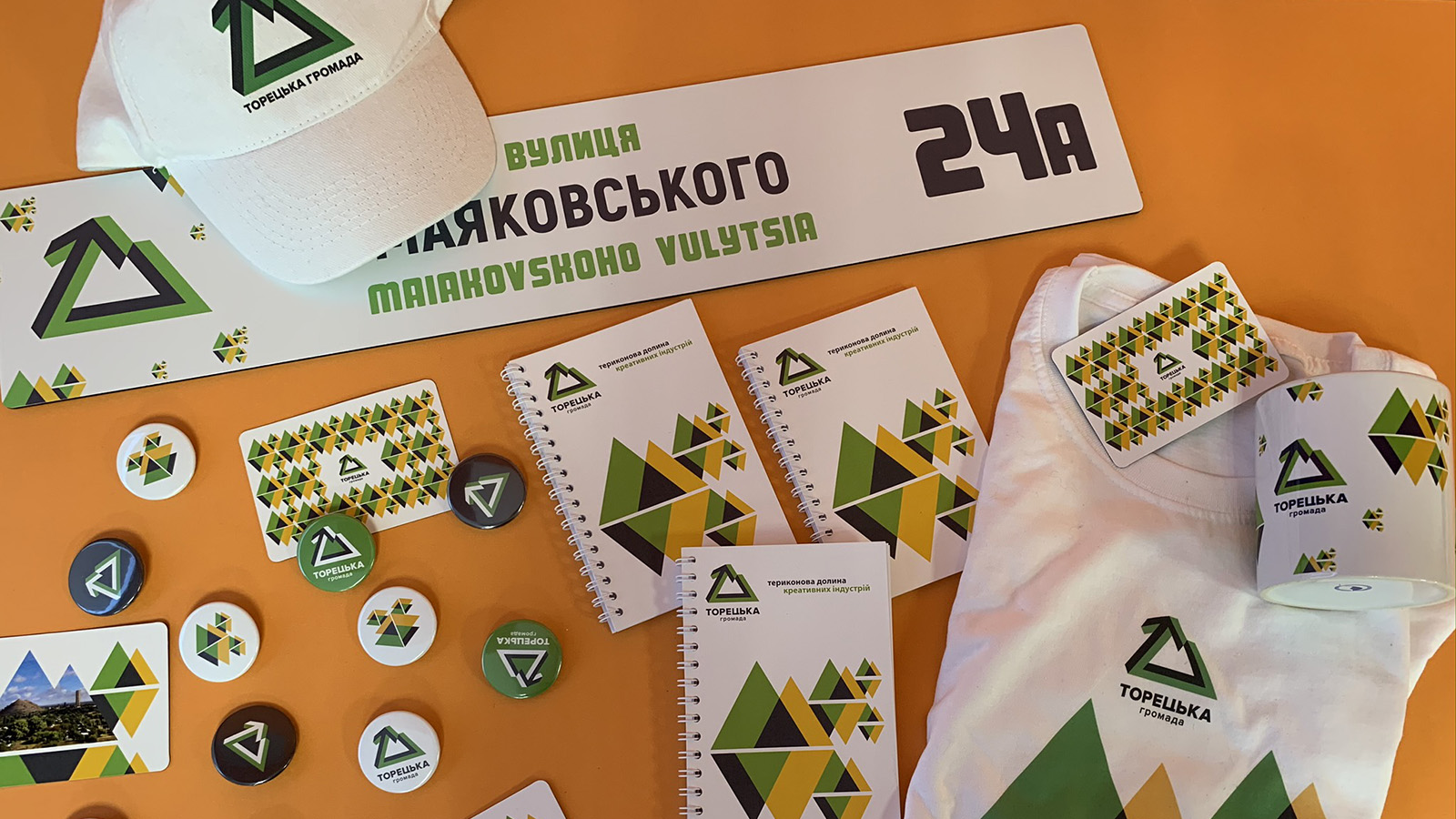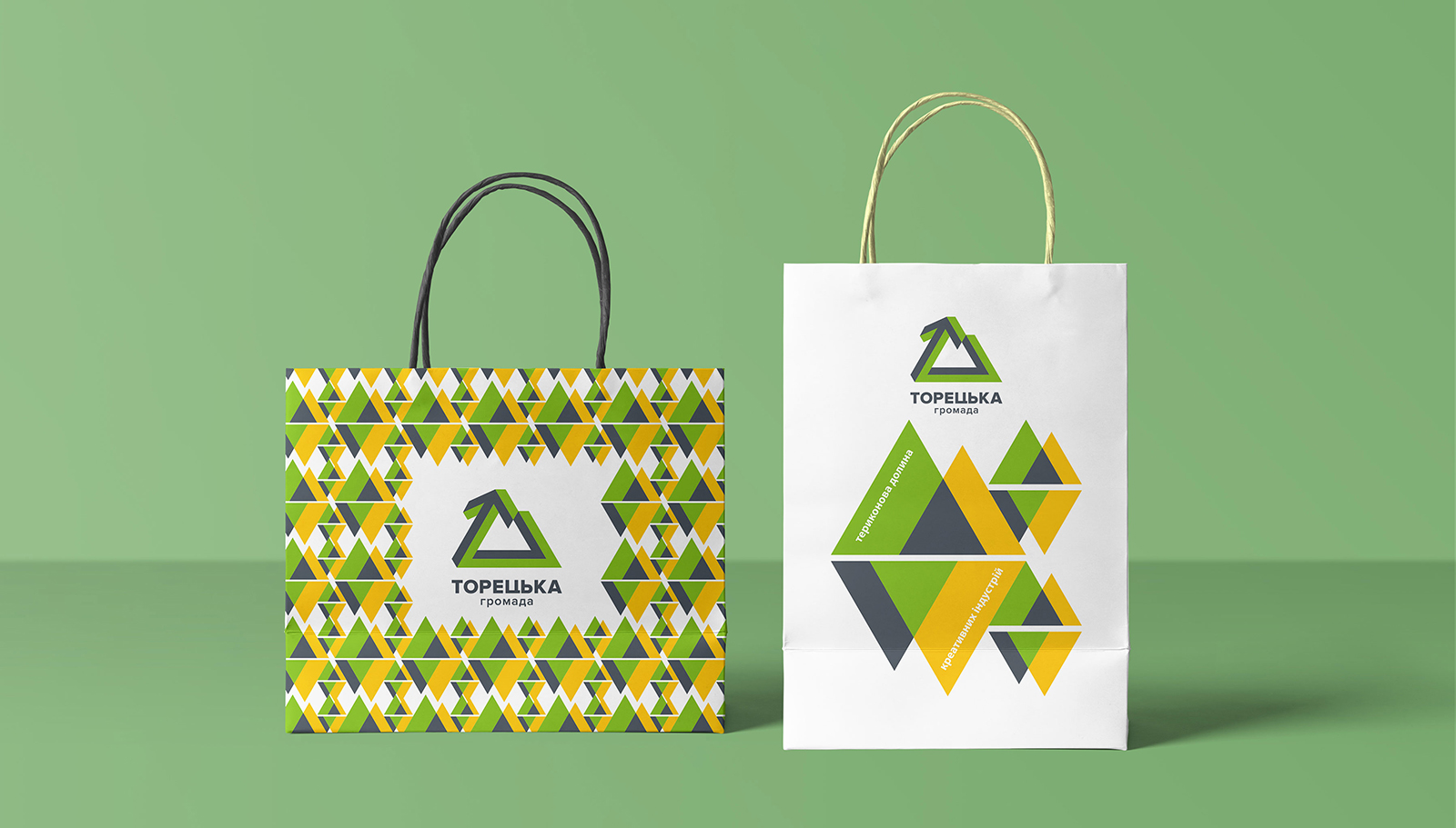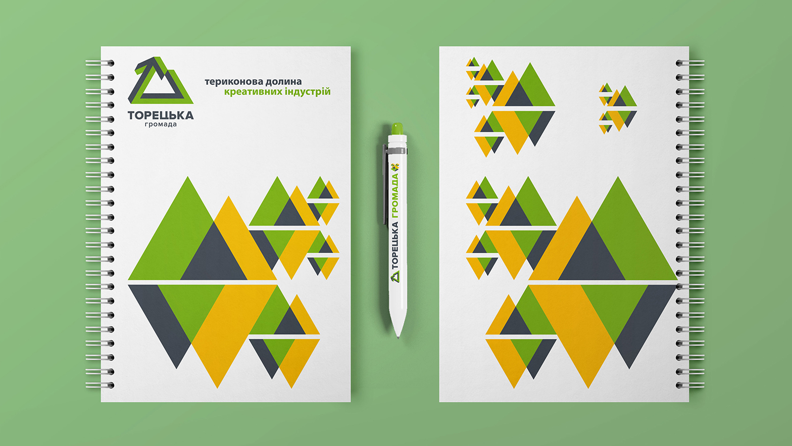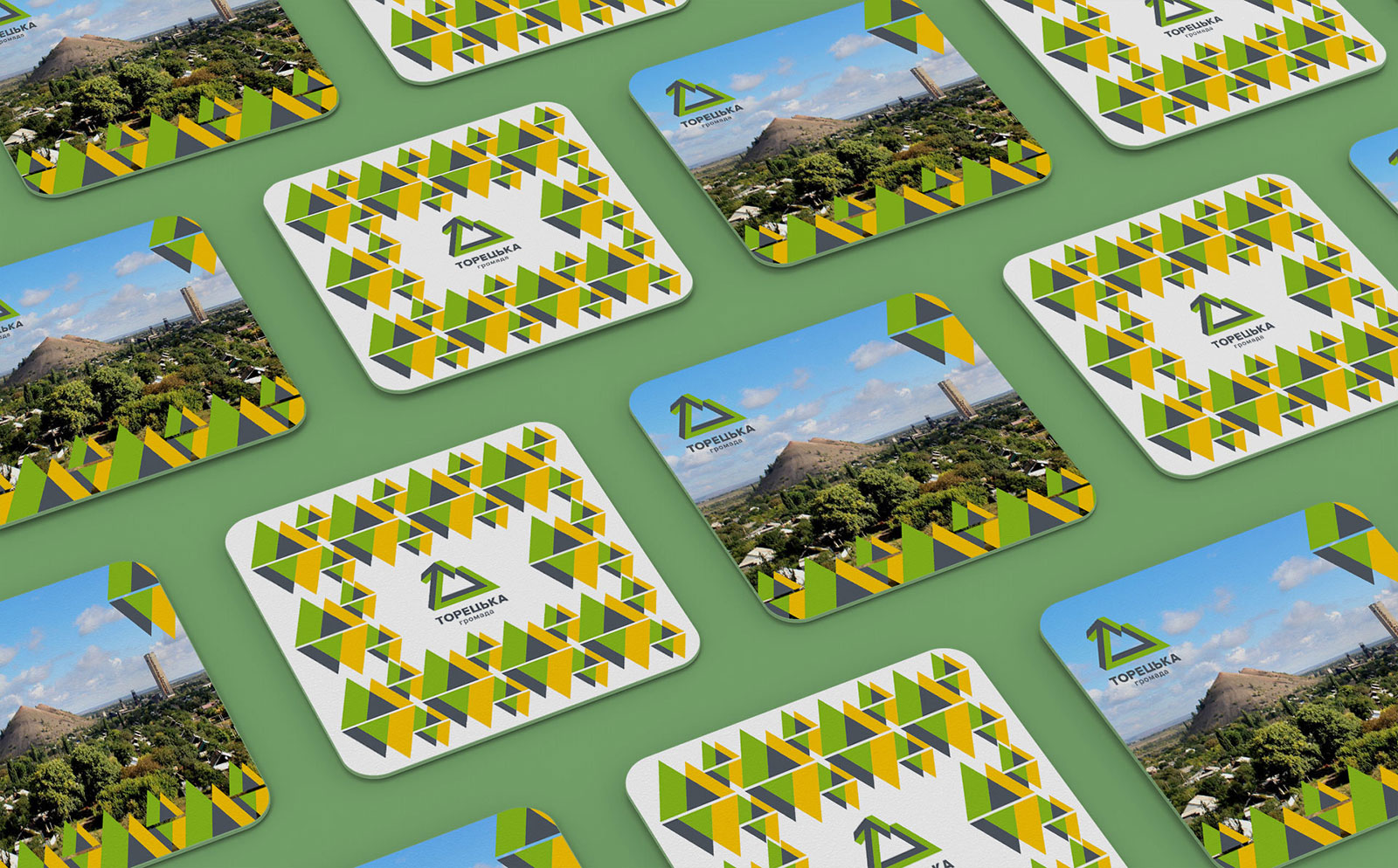 Патерн — це елемент, який дозволяє об’єднувати різні макети в рамках фірмового стилю. У брендуванні деяких об’єктів для Торецької громади патерн використовується у випадках, коли є обмежені розміром поверхні, на яких візерунок може заповнювати площину до країв макету. У випадках невеликих габаритів площини або неможливості заповнити її “на виліт” використовується фірмовий елемент (див. наступну сторінку).