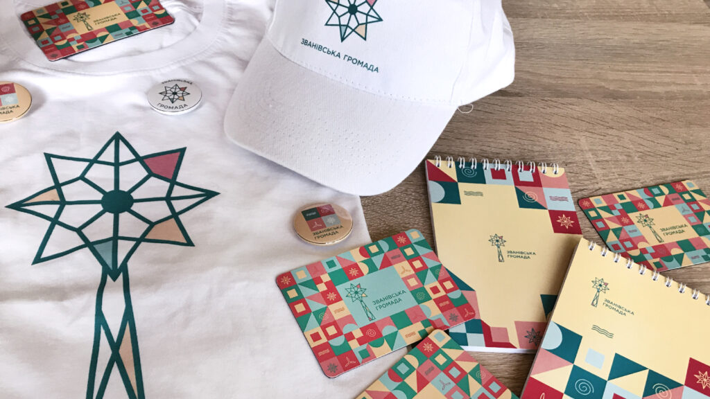 Стоїть зірка на ніжці, що разом формують образ вітрогенератора, що говорить про потужну Розу Вітрів, про традиційні вітряні млини, про сучасні технології та відновлювальну енергетику.